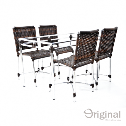 - MÓVEIS EM ALUMÍNIO E FIBRA SINTÉTICA JOGO DE MESA COM 4 CADEIRAS, LINDO JOGO IDEAL PARA SUA COZINHA ,COPA OU CHURASQUEIRA.
